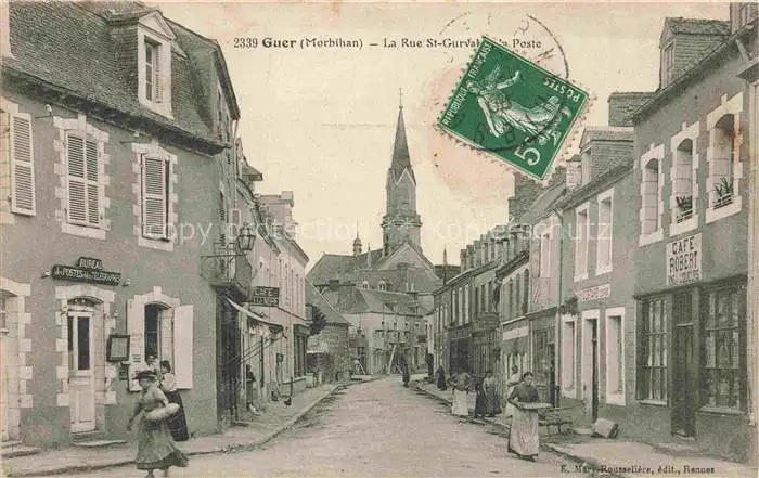 carte postale Guer Vannes 56 Morbihan Rue St Gurval et la Poste postalisch gelaufen Erhaltung siehe scans [FriedD77]