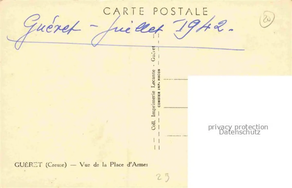 14107695 Gueret 23 Creuse Vue de la Place d'Armes postalisch nicht gelaufen Erhaltung siehe scans [FriedD77] Frie Katcode 11170023223096