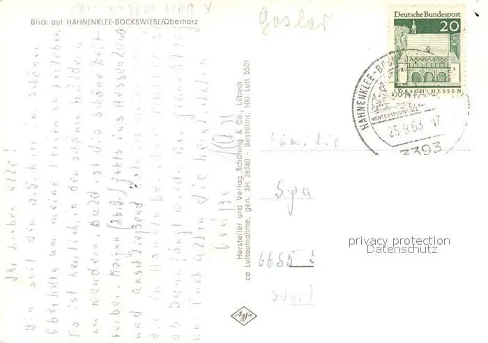 Hahnenklee Bockswiese Kategorie Alte Ansichtskarten Postkarten bx66559 Hahnenklee Bockswiese_Harz Fliegeraufnahme Hahnenklee Bockswiese postalisch gelaufen 1968 Erhaltung siehe scans [WerneD78]