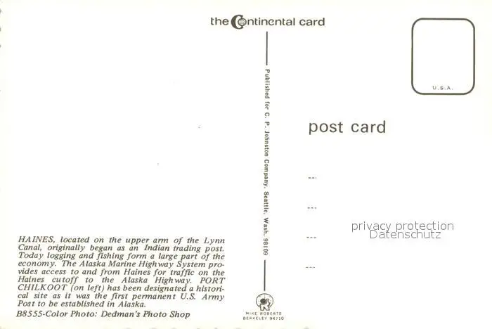 Haines_Alaska Port Chilkoot and Haines Aerial view Haines_Alaska postalisch nicht gelaufen nach 1965 Erhaltung siehe scans [FriedD77] Frierer