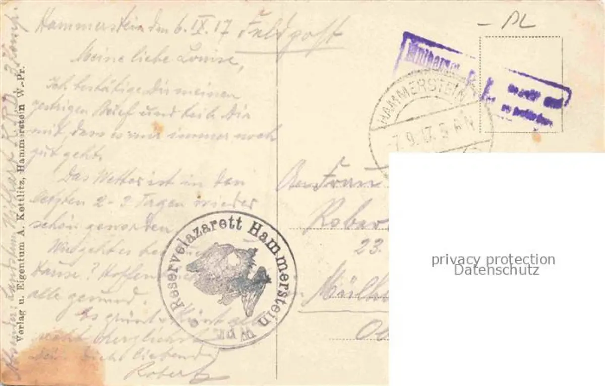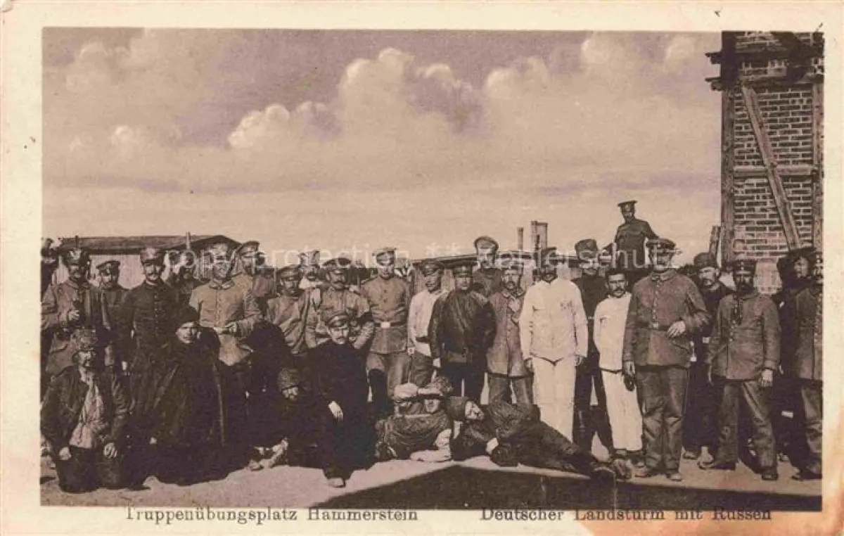 alte Postkarte Hammerstein Pommern Czarne PL Truppenuebungsplatz Deutscher Landstrum mit Russen Reservelazarett Stempel postalisch gelaufen Feldpost - Stempel Erhaltung siehe scans [FriedD77]