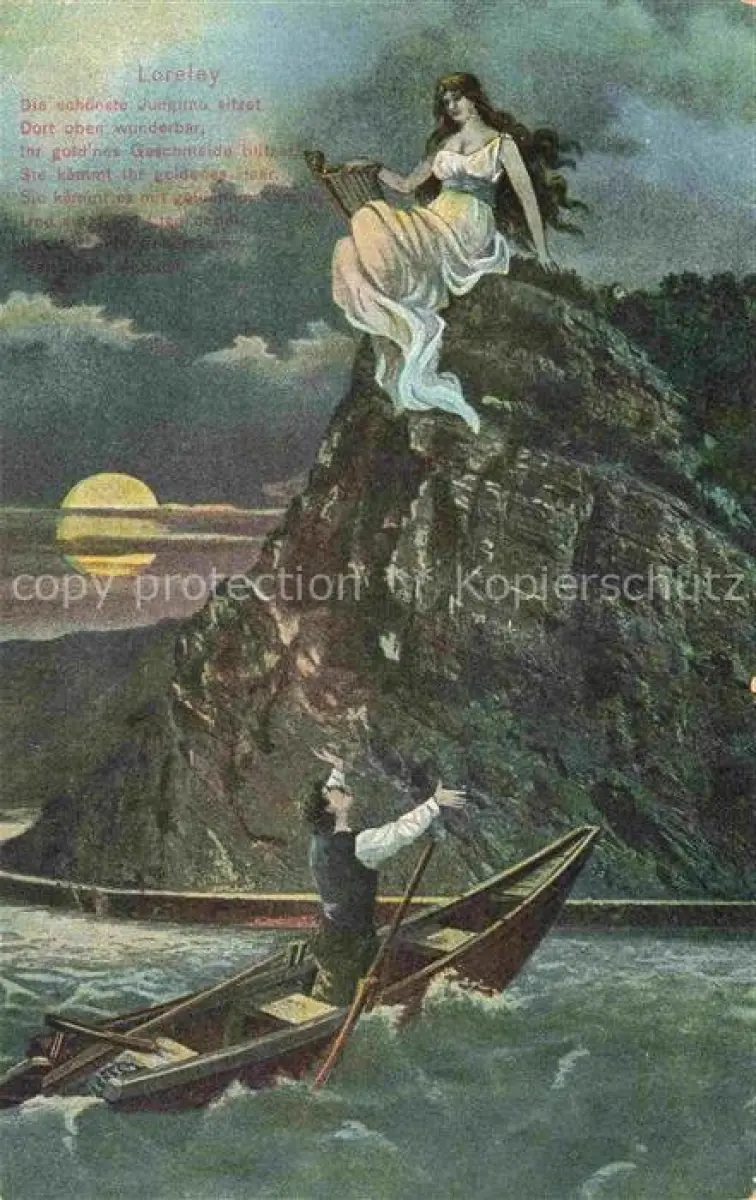AK / Ansichtskarte Harfe Harpe-- Loreley Jungfrau Gedicht