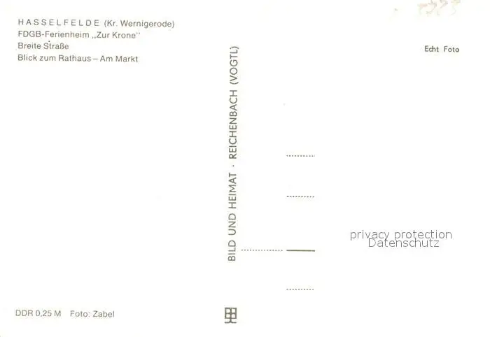 Hasselfelde Ferienheim zur Krone Breite-Strasse Markt Rathaus Hasselfelde postalisch nicht gelaufen nach 1965 Erhaltung siehe scans [LiesaD40] LiesID40