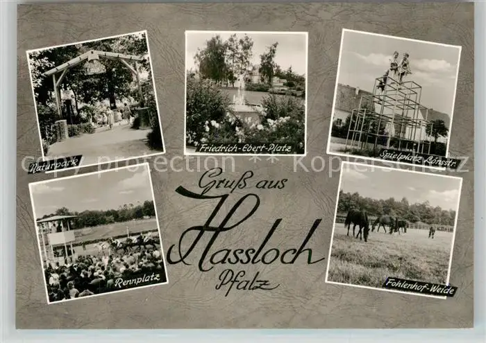 AK / Ansichtskarte Hassloch_Pfalz Naturpark Friedrich Ebert Platz Spielsplatz Loensstr Rennplatz Fohlenhof Weide Hassloch Pfalz