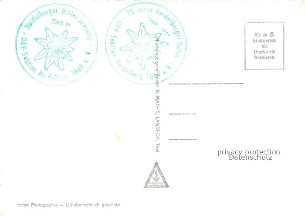 alte Postkarte Heidelbergerhuette 2265m Silvretta Tirol AT mit Zahnspitz Silvretta postalisch gelaufen Erhaltung siehe scans [WerneD78]