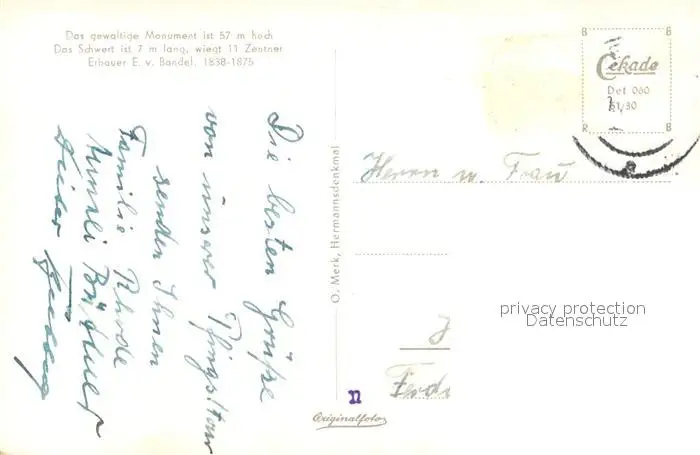 Hermannsdenkmal Hermannsdenkmal postalisch gelaufen 1921-1965 Erhaltung siehe scans [NatalD47] NataID47