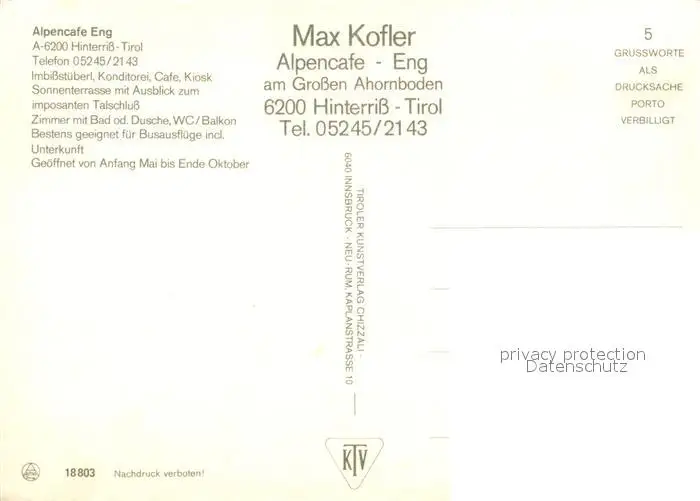 Hinterriss_Tirol Alpencafe Eng Grosser Ahornboden Hinterriss Tirol postalisch nicht gelaufen nach 1965 Erhaltung siehe scans [WerneD78] WernPID7