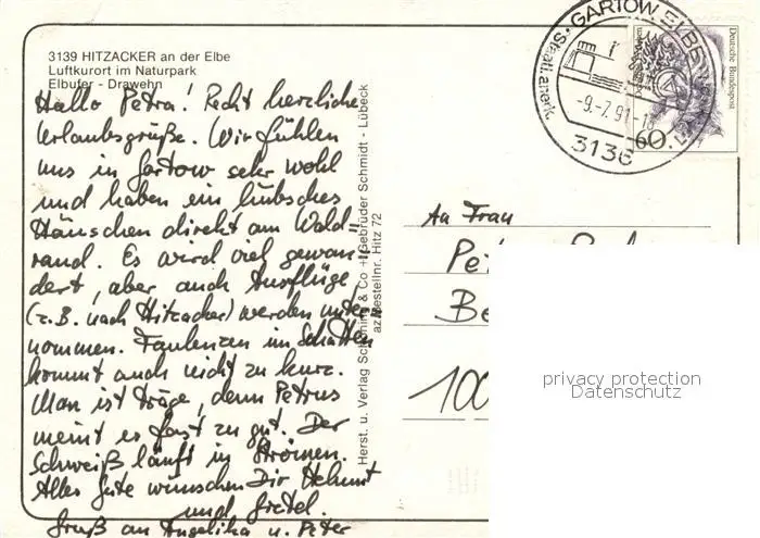 Hitzacker_Elbe Elbufer Drawehn Hitzacker Elbe postalisch gelaufen 1991 Erhaltung siehe scans [WerneD78] WernPID7