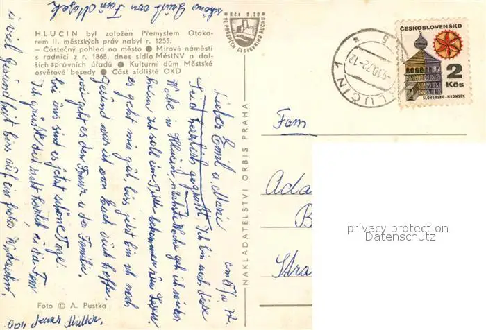 Hlucin Stadtansichten Hlucin postalisch gelaufen 1972 Erhaltung siehe scans [KathaD81] Kathoren