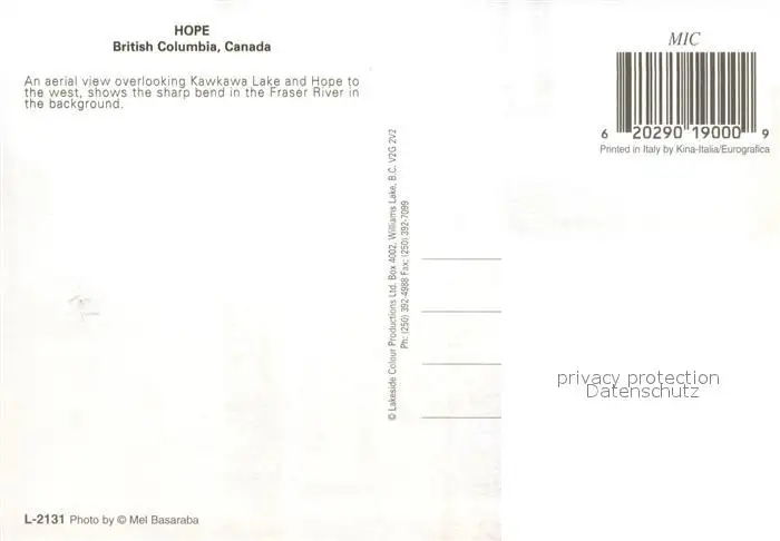 Hope_British_Columbia An aerial view overlooking Kawkawa Lake and Hope to the west shows the sharp bend in the Fraser River Hope_British_Columbia postalisch nicht gelaufen nach 1965 Erhaltung siehe scans [FriedD77] Frierer