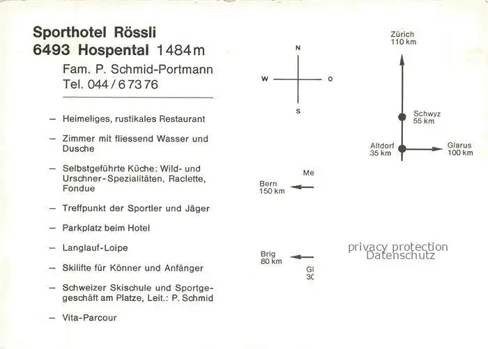14056001 Hospental Hospenthal UR Sporthotel Roessli Gastraum Panorama Kirche postalisch nicht gelaufen Werbekarte (keine Postkarte) Erhaltung siehe scans [WerneD78] Werbekarte (keine Postkarte) Wern Katcode 11470220685200