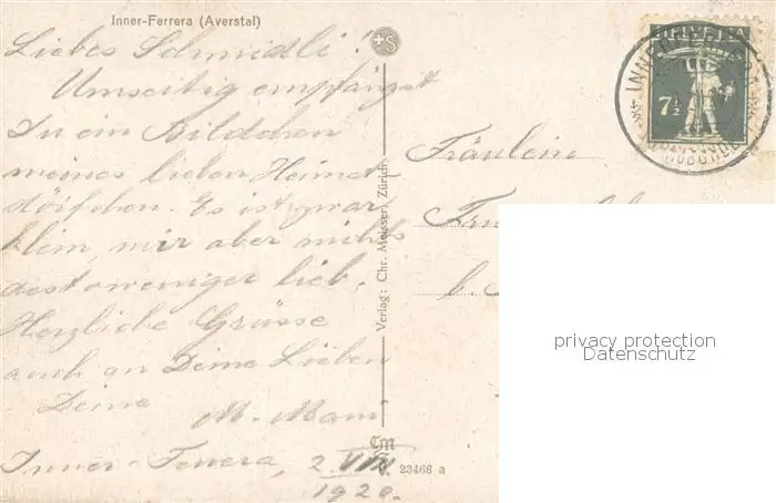 Inner-Ferrera_Averstal_GR Panorama postalisch gelaufen 1920 Erhaltung siehe scans [FriedD77] Frierer