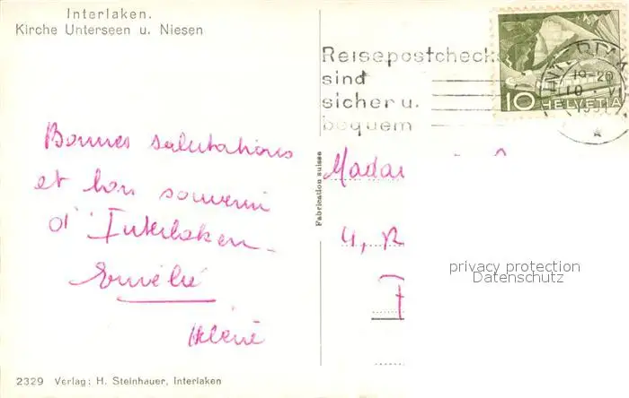 Interlaken_BE Kirche Unterseen Niesen Interlaken_BE postalisch gelaufen 1921-1965 Erhaltung siehe scans [LiesaD40] LiesID40