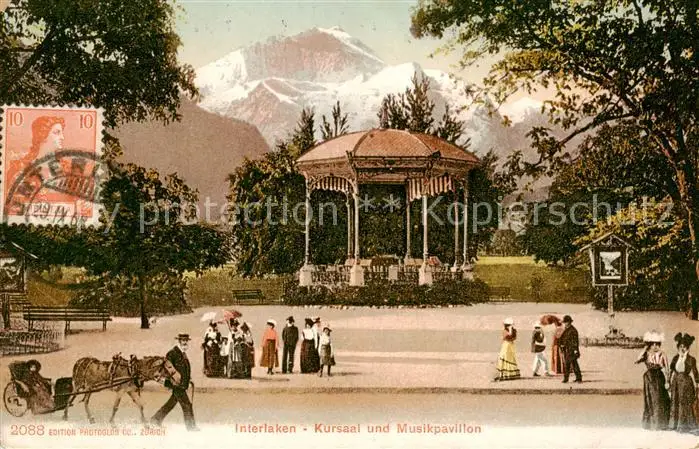 Interlaken_BE Kursaal und Musikpavillon Interlaken_BE postalisch gelaufen 1908 Erhaltung siehe scans [FriedD77] Frierer