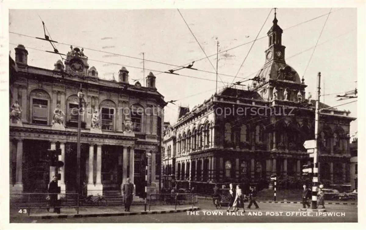 AK / Ansichtskarte Ipswich Suffolk UK Town Hall and Post Office