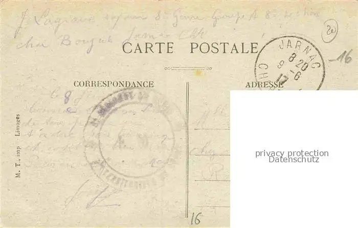 carte postale Jarnac COGNAC 16 Charente Vue panoramique sur la Place du Château Feldpost postalisch gelaufen Erhaltung siehe scans [FriedD77]