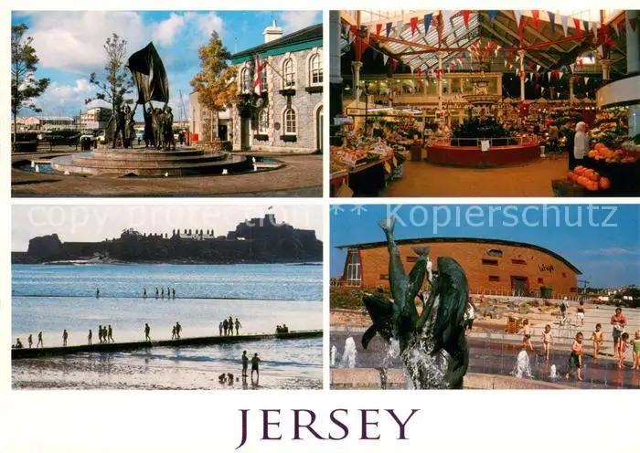AK / Ansichtskarte Jersey_Kanalinsel Liberation Square Central Market Elizabeth Castle Causeway La Fregate Waterfront