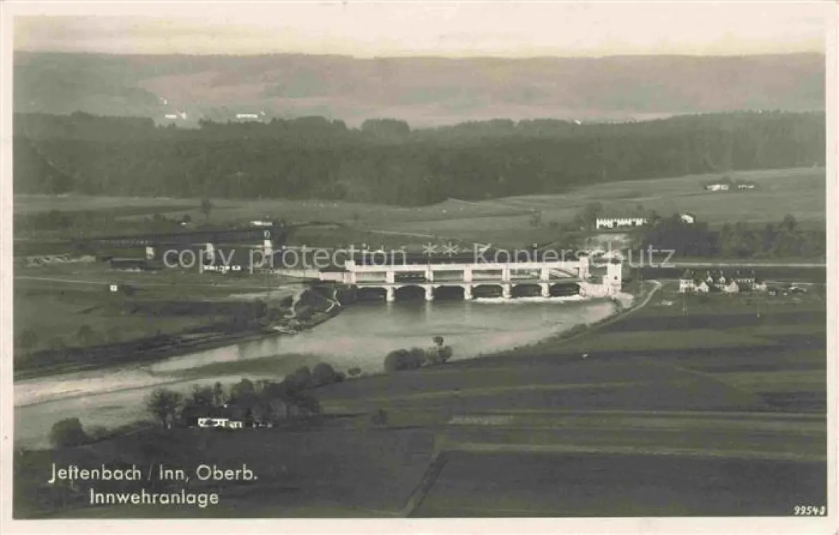 alte Postkarte Jettenbach Inn Oberbayern Innwehranlage postalisch gelaufen Erhaltung siehe scans [WerneD78]