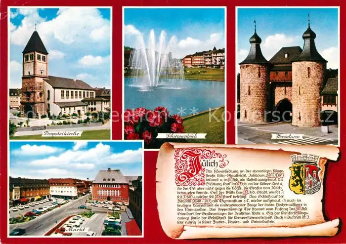 AK / Ansichtskarte Juelich Hexenturm Schwanenteich Markt Probsteikirche Juelich