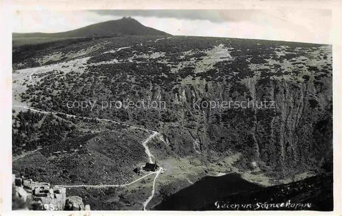 old postcard Karpacz Krummhuebel Riesengebirge PL Panorama Blick gegen Schneekoppe postalisch gelaufen Erhaltung siehe scans [FriedD77]
