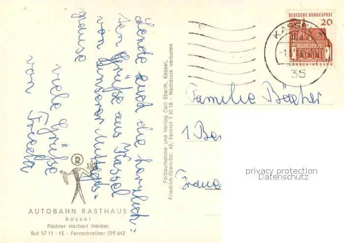 Kassel Kategorie Alte Ansichtskarten Postkarten bx89705 Kassel Autobahn Rasthaus Hotel Kassel postalisch gelaufen 1969 Erhaltung siehe scans [FriedD77]