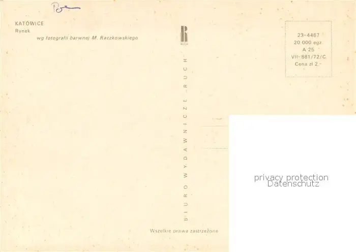Katowice Rynek Katowice postalisch nicht gelaufen nach 1965 Erhaltung siehe scans [WerneD78] WernPID7