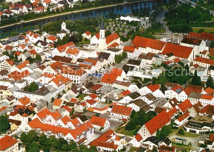 Kelheim Altstadt mit Pfarrkirche Maria Himmelfahrt Fliegeraufnahme Kelheim postalisch nicht gelaufen nach 1965 Erhaltung siehe scans [WerneD78] WernPID7