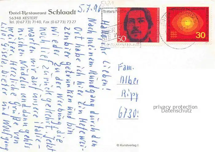 alte Postkarte Kestert Rhein Restaurant Schlaadt postalisch gelaufen Erhaltung siehe scans [WerneD78]