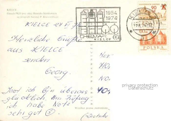 Kielce Gmach PKO przy ulicy Henryka Sienkiewicza Kielce postalisch gelaufen 1974 Erhaltung siehe scans [FriedD77] Frierer
