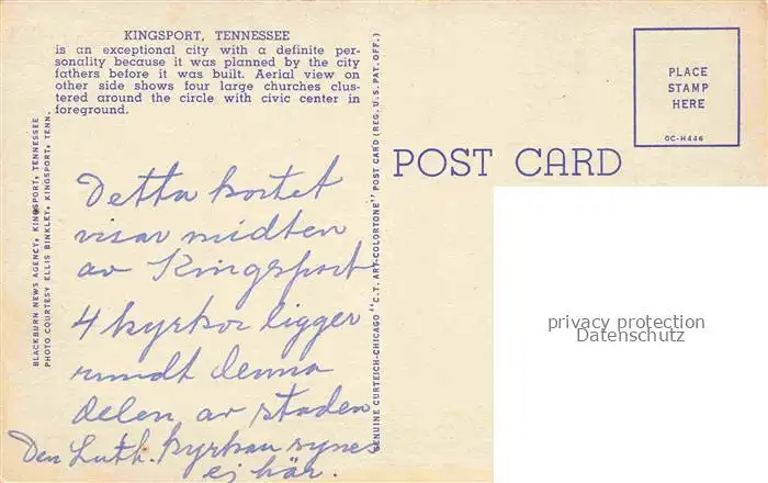 14059715 Kingsport Aerial view with civic center postalisch nicht gelaufen Erhaltung siehe scans [WerneD78] Wern Katcode 14140450000000