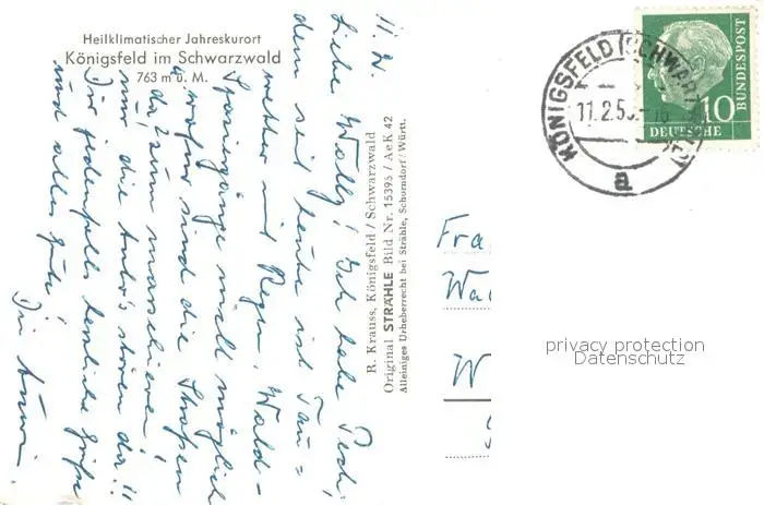 Koenigsfeld Schwarzwald Kategorie Alte Ansichtskarten Postkarten bx90334 Koenigsfeld_Schwarzwald Kurort im Winter Fliegeraufnahme Koenigsfeld Schwarzwald postalisch gelaufen ca. 1955 Erhaltung siehe scans [FriedD77]