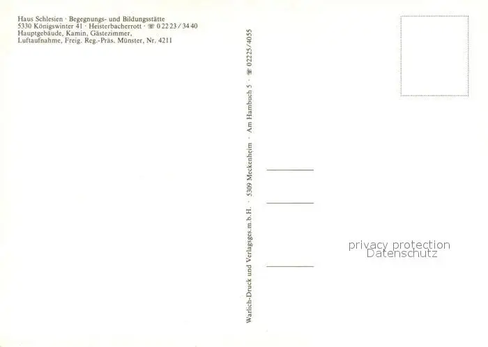 Koenigswinter Haus Schlesien Fliegeraufnahme Hauptgebaeude Kamin Gaestezimmer Koenigswinter postalisch nicht gelaufen nach 1965 Erhaltung siehe scans [WerneD78] WernPID7