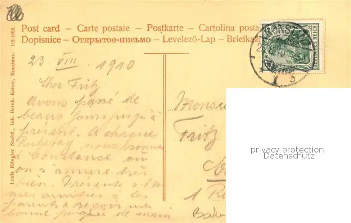 Konstanz_Bodensee Hafeneinfahrt Stadtgarten Konstanz_Bodensee postalisch gelaufen 1910 Erhaltung siehe scans [KathaD81] Kathoren