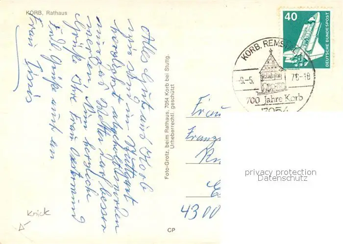Korb_Remstal Rathaus Korb_Remstal postalisch gelaufen 1978 Erhaltung siehe scans [NatalD47] NataID47