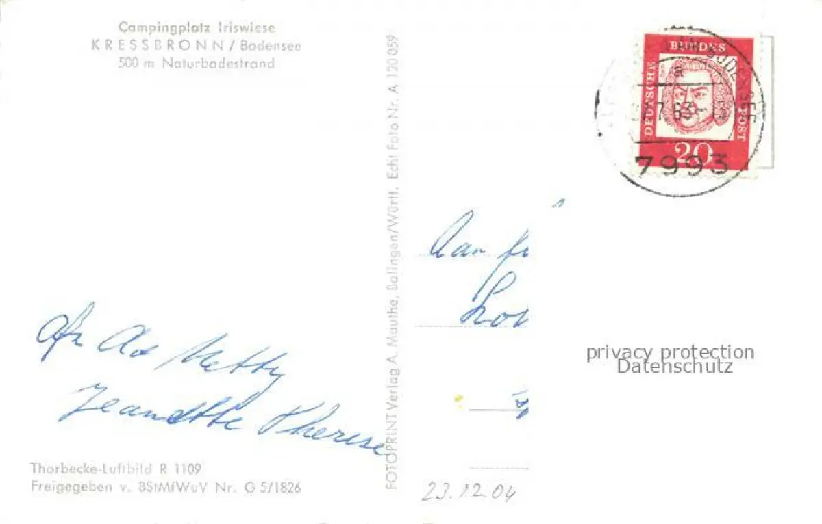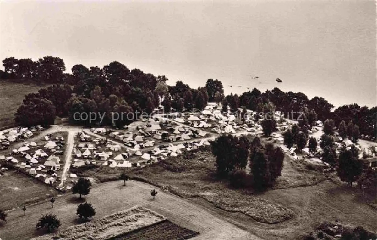 alte Postkarte Kressbronn Bodensee BW Campingplatz Iriswiese mit Naturbadestrand postalisch gelaufen Fliegeraufnahme Erhaltung siehe scans [FriedD77]