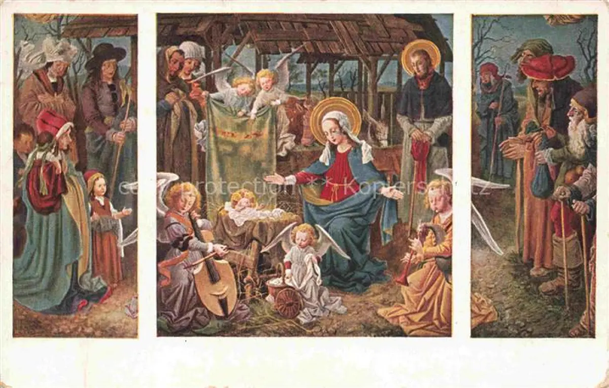 Krippe Weihnachtskrippe Crib Copier L.v.Kramer Nr. 2222 Jesus Engeln postalisch gelaufen Erhaltung siehe scans [IrynaD87] alte Postkarte Iryn Katcode 22460000000600