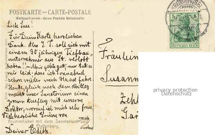 old postcard Krummhuebel Karpacz Riesengebirge PL mit dem Sanatorium und Pfaffenberg postalisch gelaufen Erhaltung siehe scans [WerneD78]