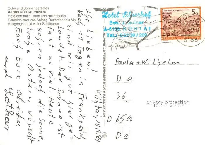 Kuehtai Fliegeraufnahme Kuehtai postalisch gelaufen 1987 Erhaltung siehe scans [WerneD78] WernPID7