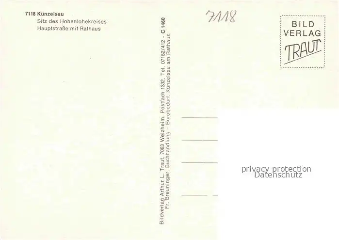Kuenzelsau Hauptstrasse mit Rathaus postalisch nicht gelaufen Erhaltung siehe scans [FriedD77]