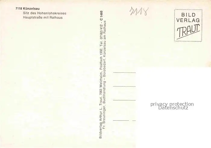 Kuenzelsau Hauptstrasse mit Rathaus postalisch nicht gelaufen Erhaltung siehe scans [FriedD77]
