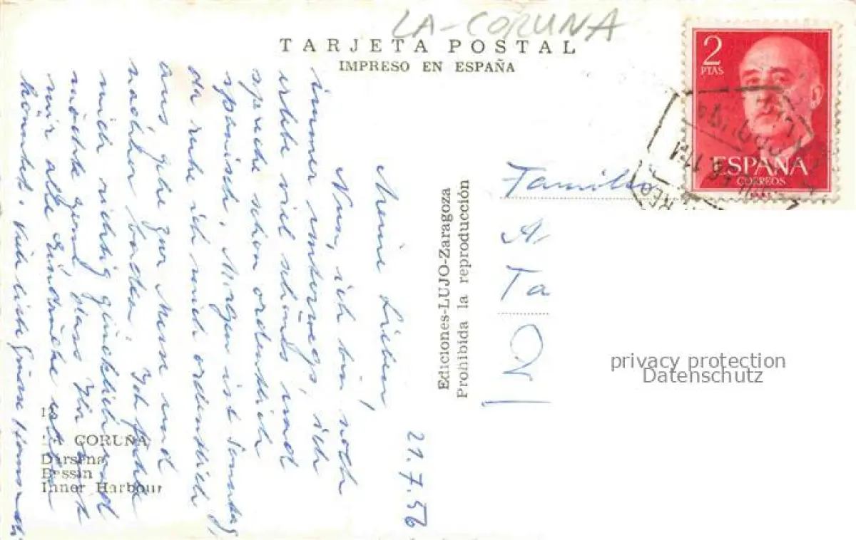 old postcard LA CORUNA A Coruna ES Inner Harbour postalisch gelaufen Erhaltung siehe scans [WerneD78]