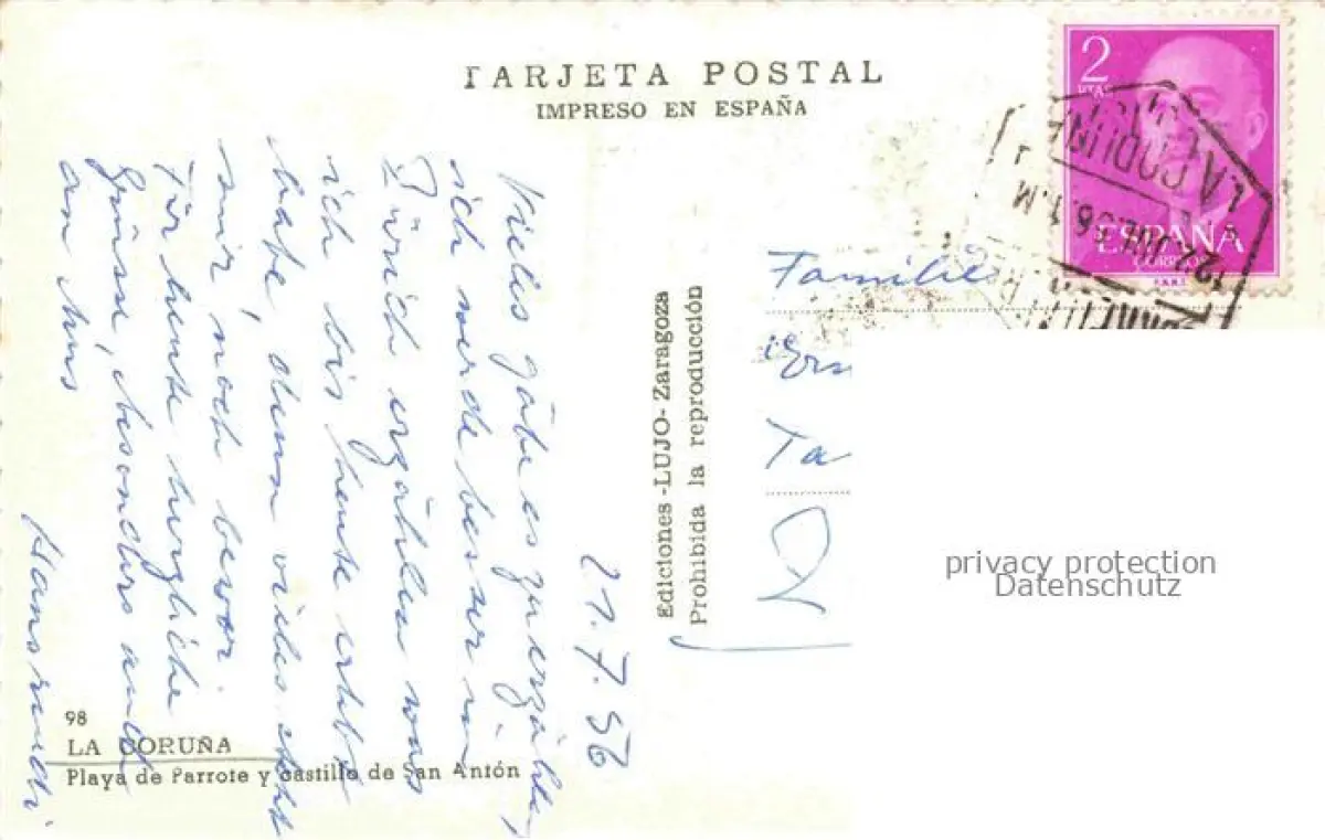 old postcard LA CORUNA A Coruna ES Playa de Parrote y castillo de San Anton postalisch gelaufen Erhaltung siehe scans [WerneD78]