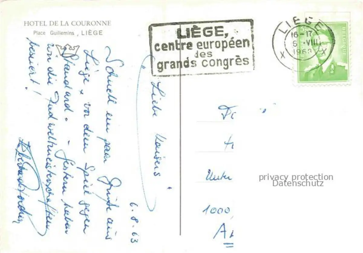 LIEGE Luettich Luik Belgie Hotel de la Couronne Gastraeume postalisch gelaufen Erhaltung siehe scans [WerneD78] carte postale Wern Katcode 11070062000376