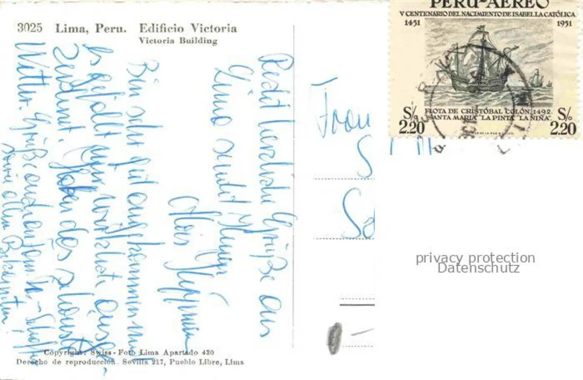 old postcard LIMA Peru Edificio Victoria postalisch gelaufen Erhaltung siehe scans [FriedD77]