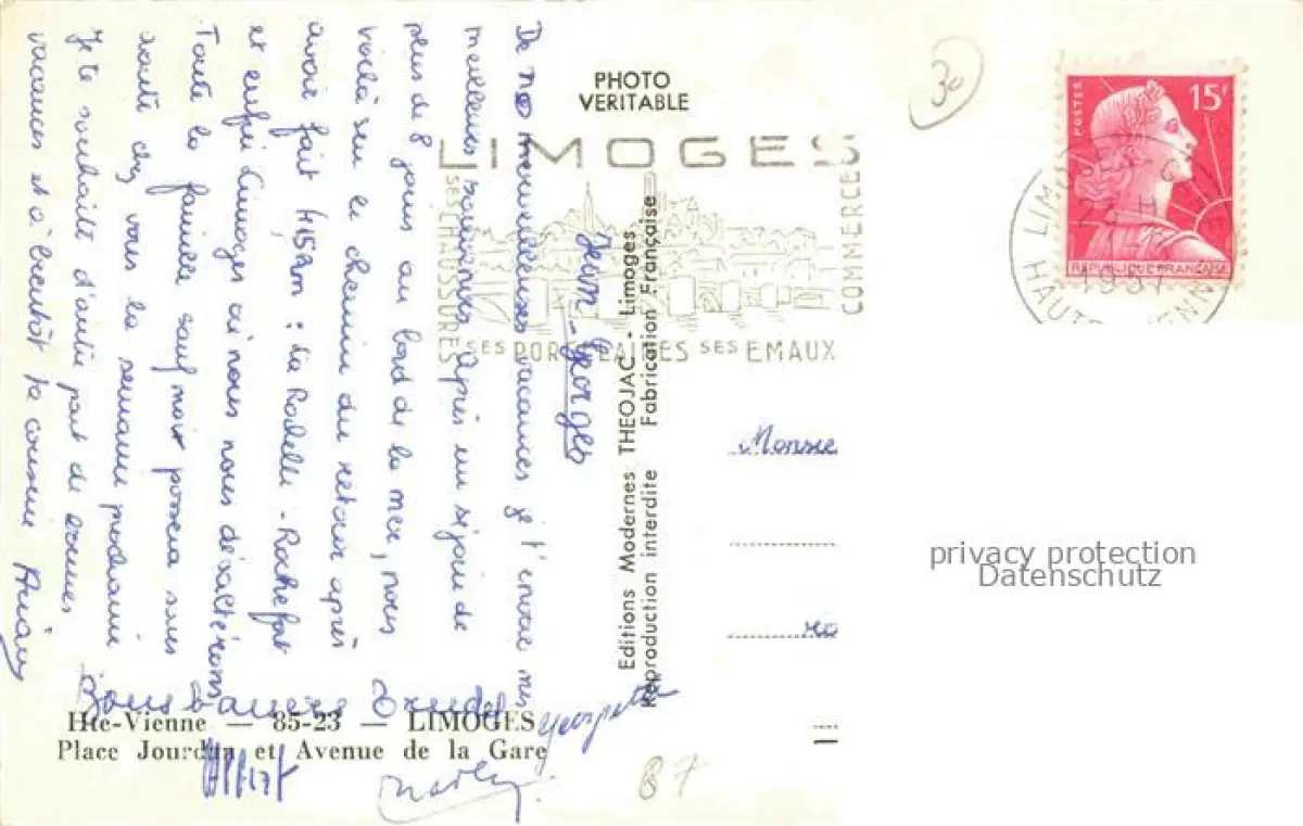14115382 LIMOGES 87 Haute-Vienne Place Jourdan et Avenue de la Gare postalisch gelaufen Erhaltung siehe scans [FriedD77] carte postale Frie Katcode 11170087287085