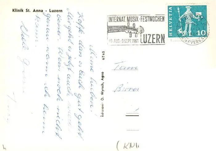LUZERN__LU Klinik St. Anna postalisch gelaufen 1961 Fliegeraufnahme Erhaltung siehe scans [FriedD77] Fliegeraufnahme Frierer