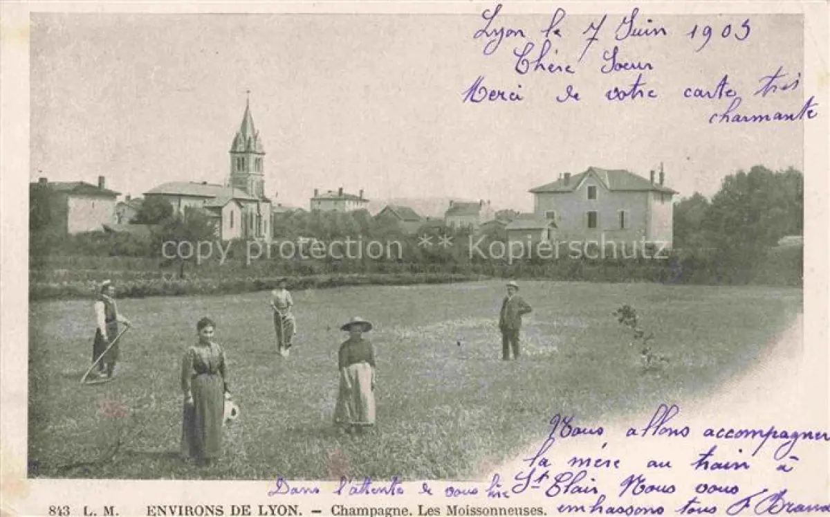14109445 LYON 69 Rhone Champagne Les Moissonneuses postalisch gelaufen Erhaltung siehe scans [FriedD77] carte postale Frie Katcode 11170069169123