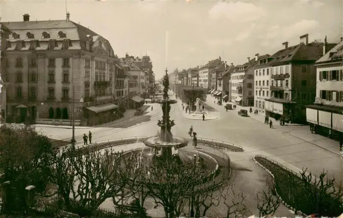 La_Chaux-de-Fonds_NE Rue Léopold Robert Fontaine postalisch gelaufen 1940 Erhaltung siehe scans [FriedD77] Frierer