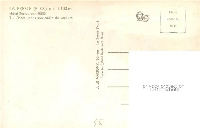 La_Preste Hotel Restaurant Ribes La_Preste postalisch nicht gelaufen 1921-1965 Erhaltung siehe scans [FriedD77] Frierer