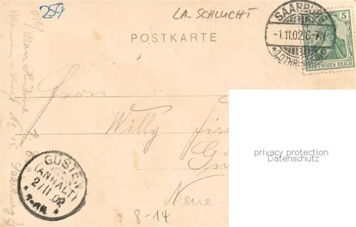 La_Schlucht_88_Gerardmer_Vosges Deutsch-Franzoesische Grenze a. d. Strasse v. Gerardmer nach Muenster postalisch gelaufen 1902 Erhaltung siehe scans [LiesaD40] LiesID40